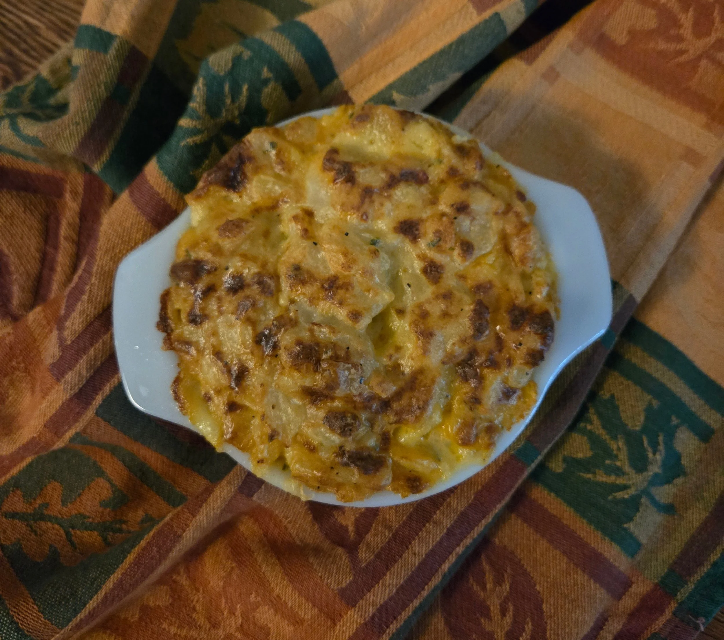 Tender sliced potatoes and bacon in a sour cream and Cheddar cheese sauce.